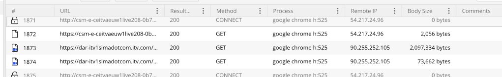 - The host domain for the Manifest files is: csm-e-ceitvaeuw1live208-0b7cfe9d9db25a210.play.dar.itv.com