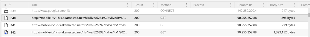 - The mobile streams are HLS – not DASH. the ~300 byte files are m3u8 manifest files, followed by the 1.5 mB .ts files (that contain the video)
