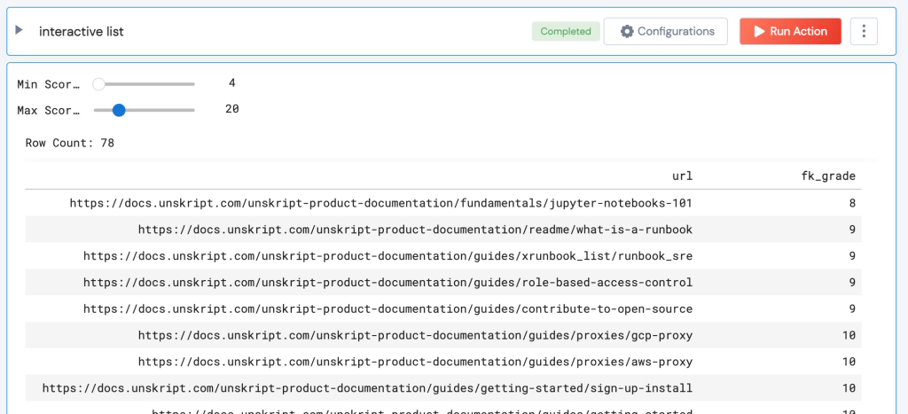 The Runbook also has an interactive table to look at which pages fall into different grade ranges: