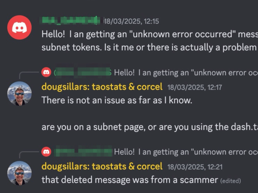 Does this stop them? Heck no. Once banned – they hang around outside the Discord and have an alt account listening. Then they pounce in with a DM offering help.