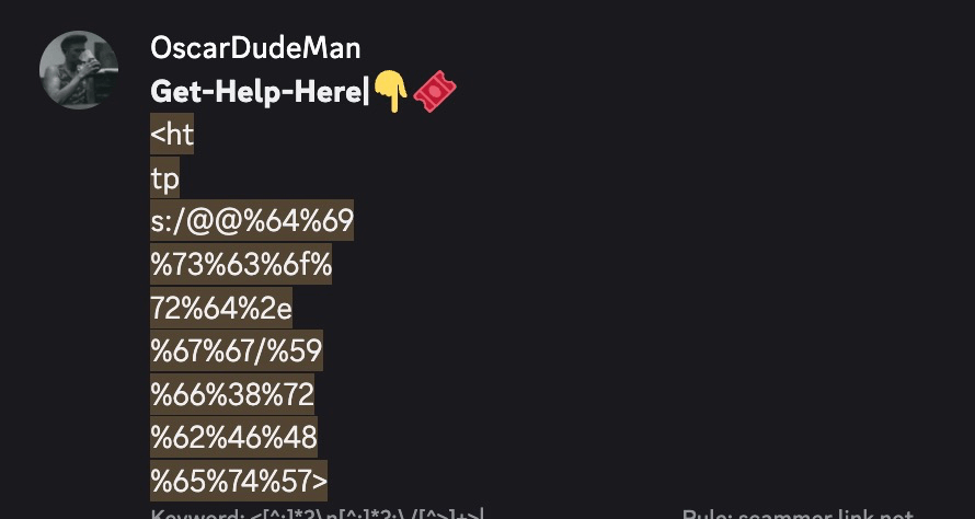 Aside to any Discord employees who might be reading this – “fixing” URLs to render correctly like this is stupid. You should stop doing that. It will stop MANY MANY scammers in their tracks.